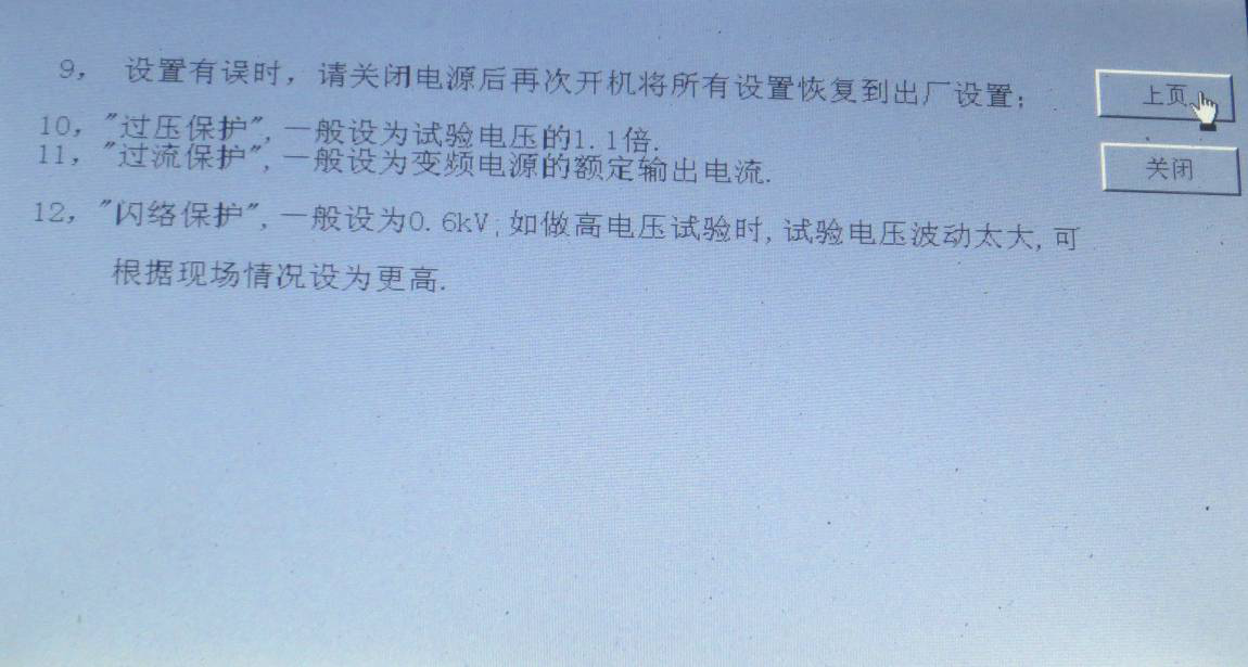 閃絡保護:設置擊穿電壓的誤差值,且當閃絡后液晶顯示屏須重新啟動